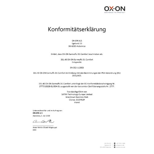 - Norm: EN 352-1,